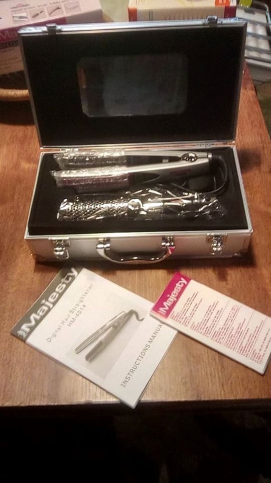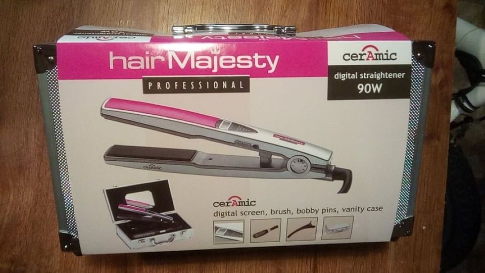 žehlička na vlasy Hair Majesty ceramic professional 90w, 140-200C stupňů s alu kufříkem, 2x spona + kartáč na vlasy...nebo bez kartače a kufříku za 200,-kč