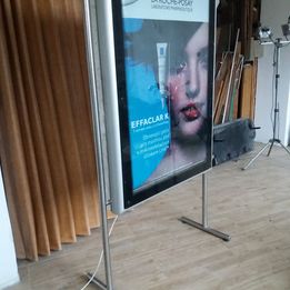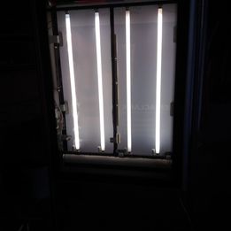 Reklamní stojan oboustranný osvětlený, posuvný - nahoru dolů lze použít více reklam (obrázků)...tvrzené sklo-nerez...lze měnit interval otáčení... dohoda